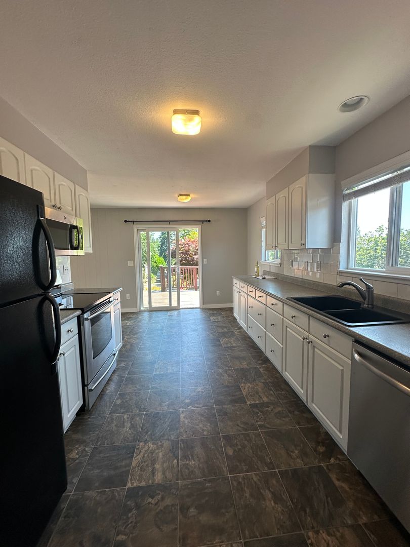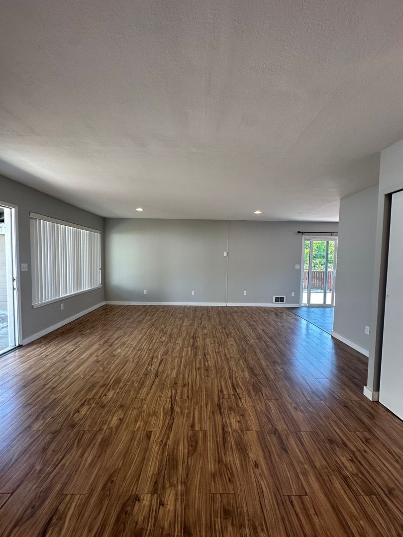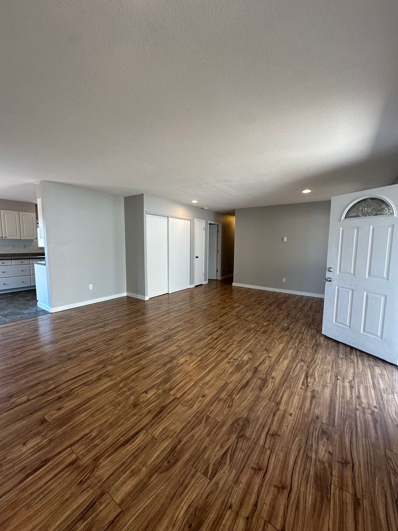 Open & Bright Living Area at the Front of House. Kitchen has Stainless Steel Appliances including Refrigerator, glass top stove and dishwasher. Wood Laminate Floors throughout most of House. Slider to front Deck with view.