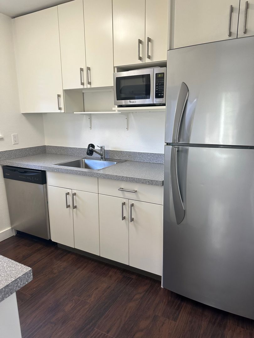 Off street parking. Private patio. All new paint. Dining room. Living room. Laundry on site.