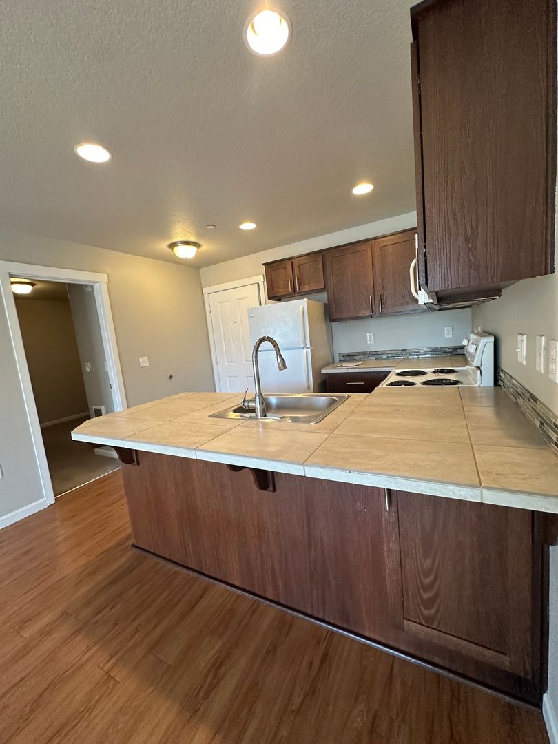 This TWO bedroom AND one bath apartment offers nearly 800 ft.². Open kitchen. Carpet in bedroomS. Luxury vinyl floors throughout. Shower with tub. Washer and dryer. Dedicated parking.