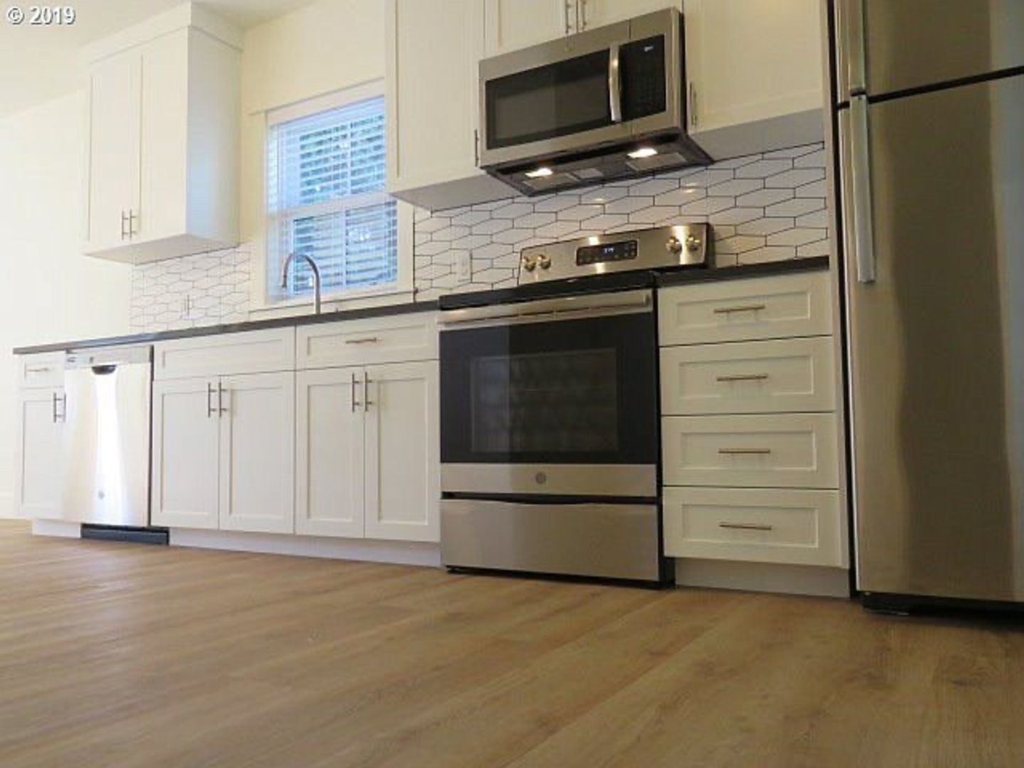 Faux hardwood floors, SS Appliances. High-end finishes throughout. Washer and dryer. Apartment is 700 sq ft plus a 300 sq ft basement.