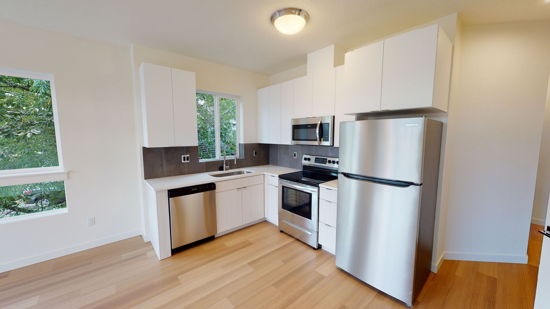 Recently built apartments across the street from Mt Scott Park. Well constructed with Modern amenities.